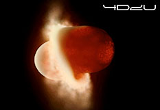 原始惑星の巨大衝突地球型惑星が形成される過程では、原始惑星同士による複数回の激しい衝突があったと考えられます。火星サイズの原始惑星同士が衝突したときの激しい変化を追っていきます。 |