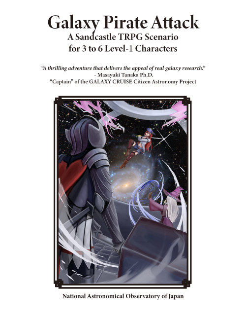 The Sandcastle TRPG was created by the National Astronomical Observatory of Japan (NAOJ) in response to the changing needs of the science outreach community. But Sandcastle is not an educational game. It is designed by gamers for gamers to enjoy playing as a normal TRPG; it is also extremely flexible and capable of accommodating a wide variety of content. NAOJ will be using Sandcastle for astronomy outreach; we encourage other research and educational institutes to use it for their own outreach efforts; and encourage gamers to play it just for fun.